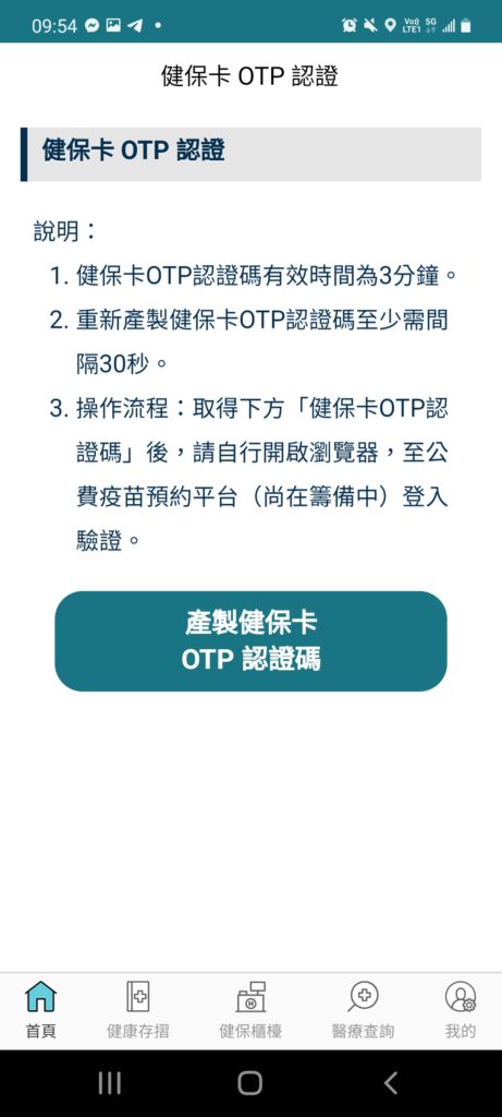 To access the OTP code, you just go into your NHI app and click the OTP password option: