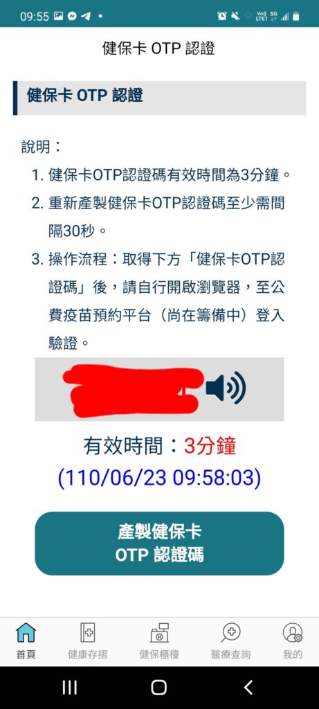 Then you click 「產制OTP認證碼」 and you’ll get a six digit number, which you can enter on the website (only valid for 3 minutes):