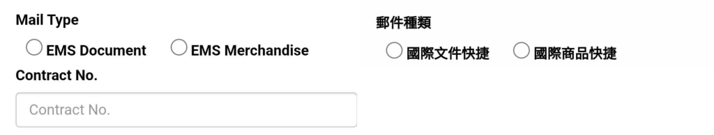 When you click on “EMS Service” or 「國際快捷郵件」 (also for the Parcel/國際包裹 option), you’ll be prompted to fill out a form as follows, where your preparation above should pay off: