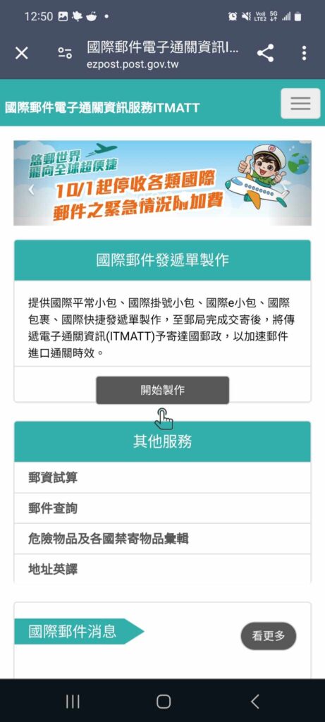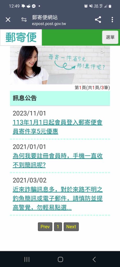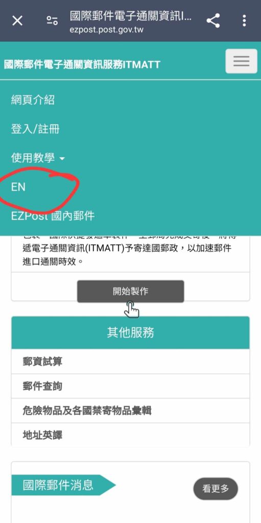 It’s not exactly intuitive, as they have just put the post office notice board as the lead page, and you need to click 「選單」(Menu) and then select the option shown below to get to the options you need: