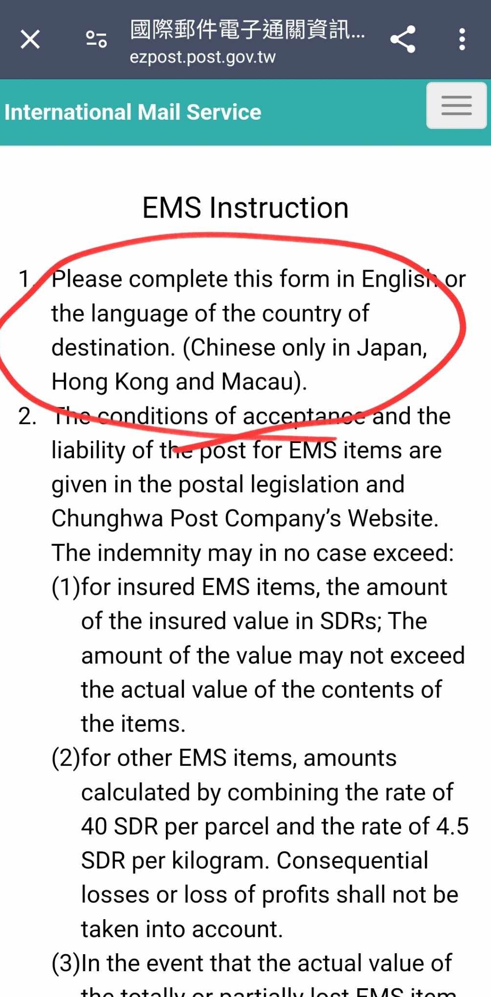 The service agent, will likely shoosh you over to a poster featuring this QR code as soon as you arrive in the post office with your box of stuff as if it will answer all the questions you possibly have. After the first page, you can switch to English, but the English page is a little bit more jargony than the Chinese and might be confusing if you’re talking to a service agent: