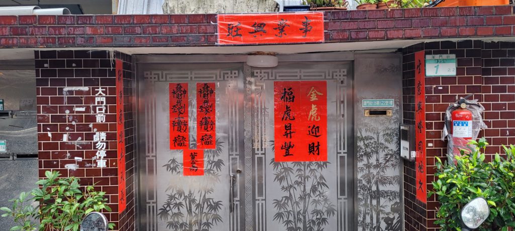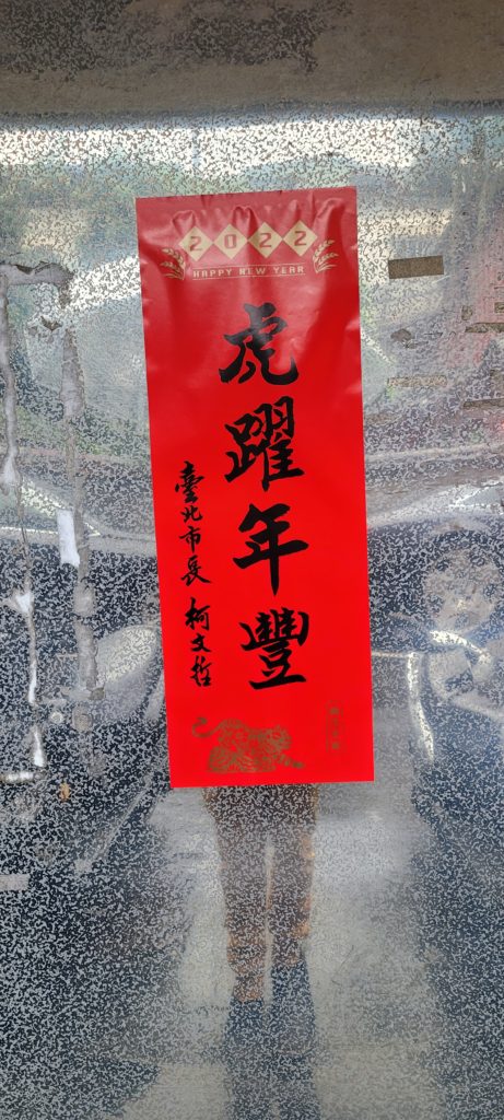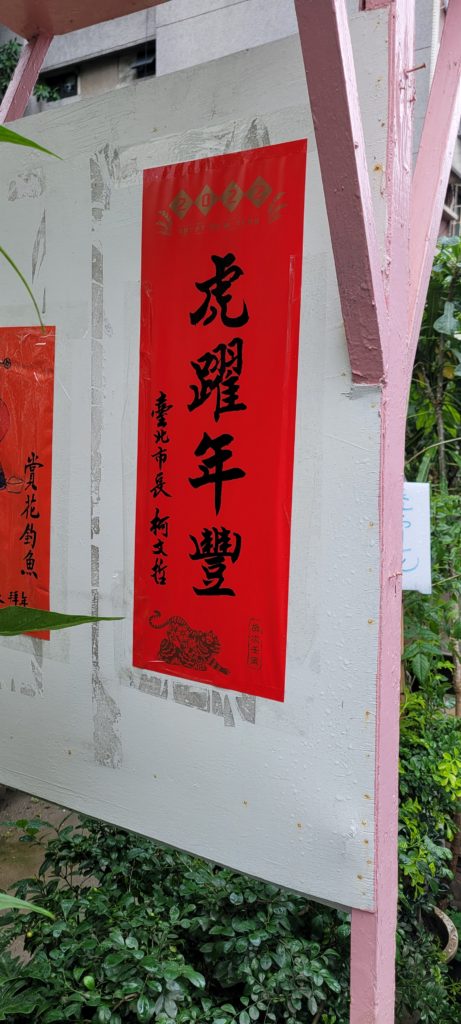 Out and about in Taipei over the new year, I spotted quite a lot of Year of the Tiger couplets, some printed, some more original. Some of them even gave an insight into the political persuasion of the inhabitants.